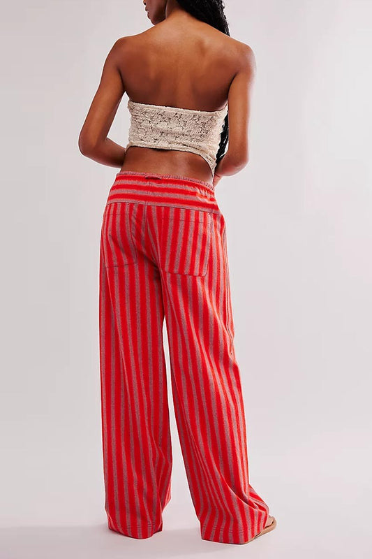 Low Rise Striped Drawstring Pant- Rams Green & Yellow