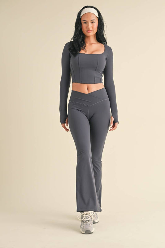 Ash Blue Long Sleeve Square Neck Corset Top
