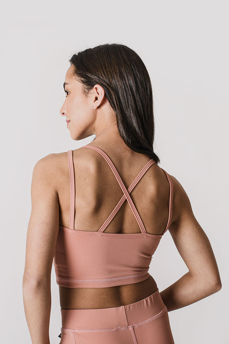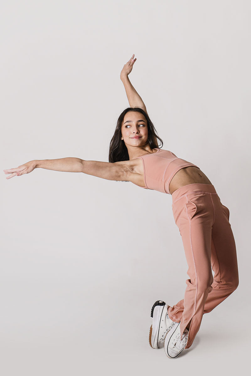 When I designed the Evolve Top I wanted something really unique but at the same time very minimalistic. Fully lined and really comfortable. You can pair them with my Empower Flare Leggings, super flattering.. love the low waist! The fabric is super soft, such a comfy set to wear from studio to street… you will love it! – Mariandrea