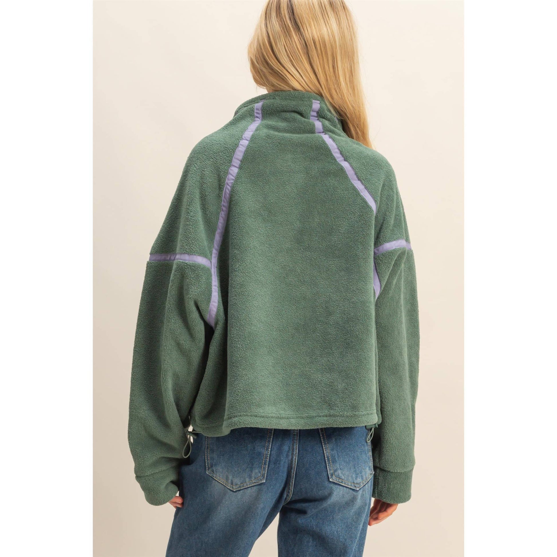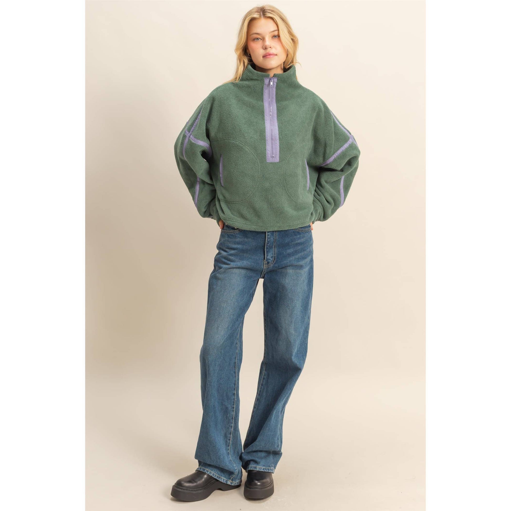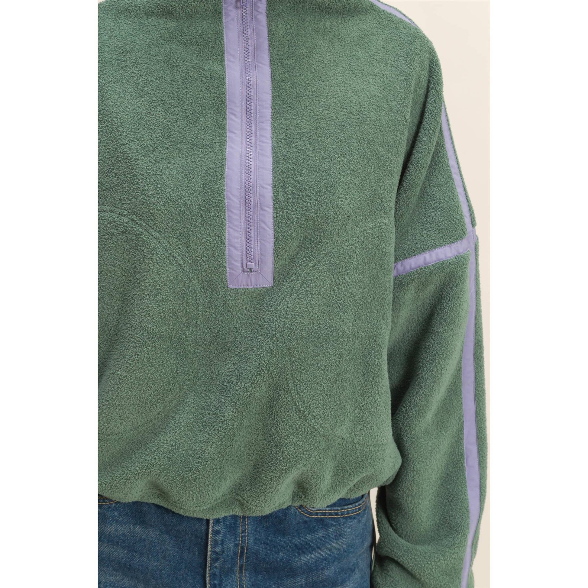 This modern half-zip jacket offers a stand-up collar and large patch pockets for functional style. Its relaxed fit makes it perfect for layering over tees.
