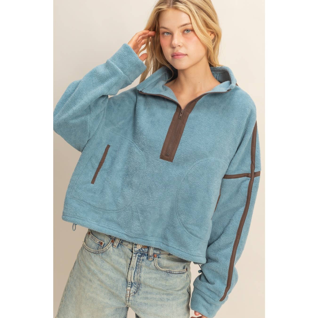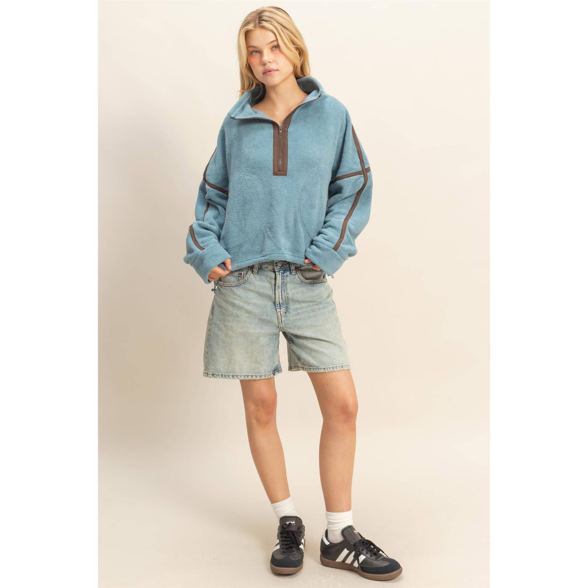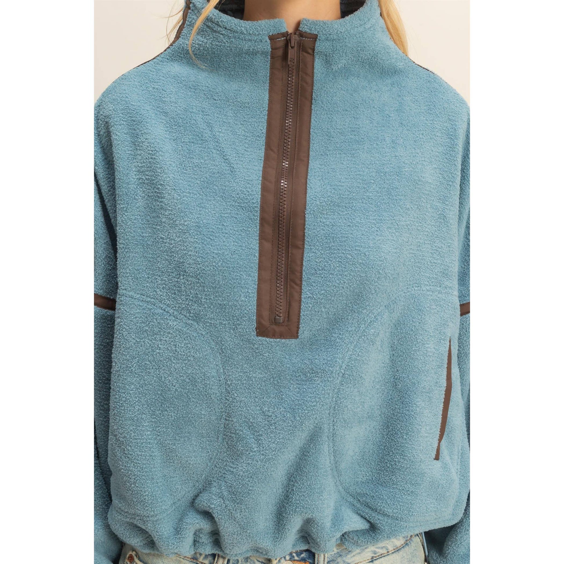 This modern half-zip jacket offers a stand-up collar and large patch pockets for functional style. Its relaxed fit makes it perfect for layering over tees.