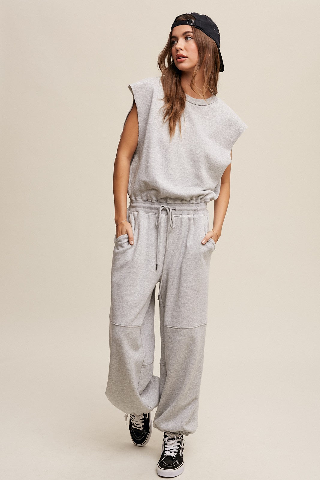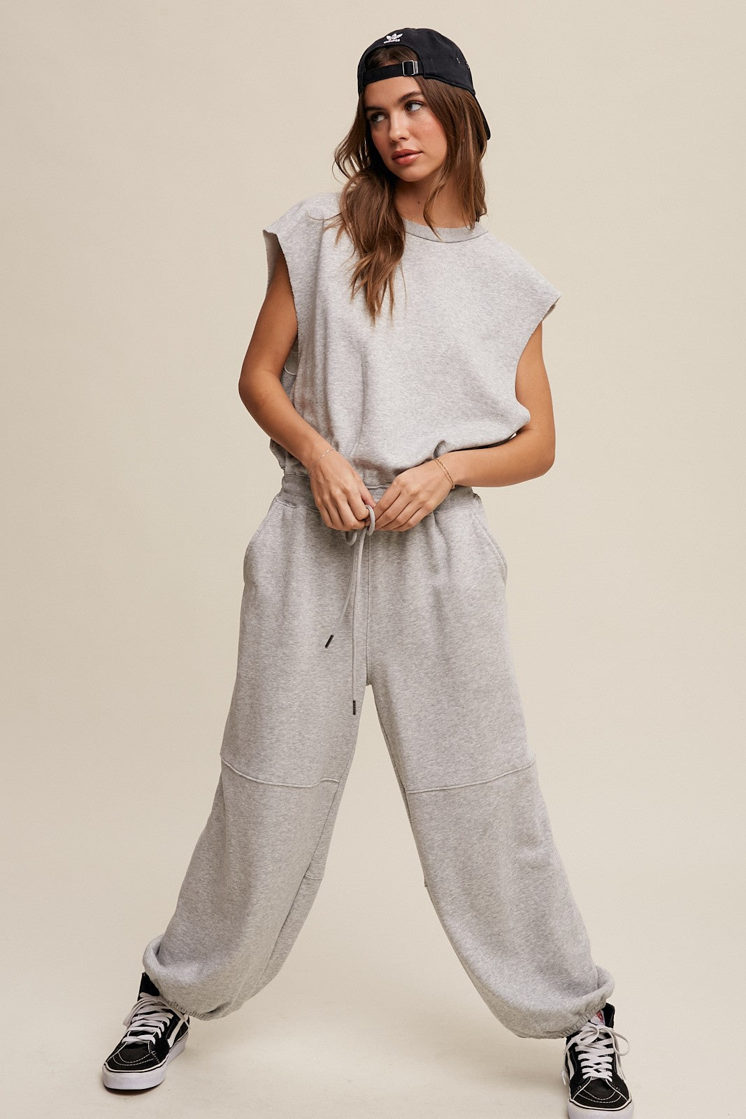 - Athleisure French Terry Loose Tee Jogger Pants Jumpsuit