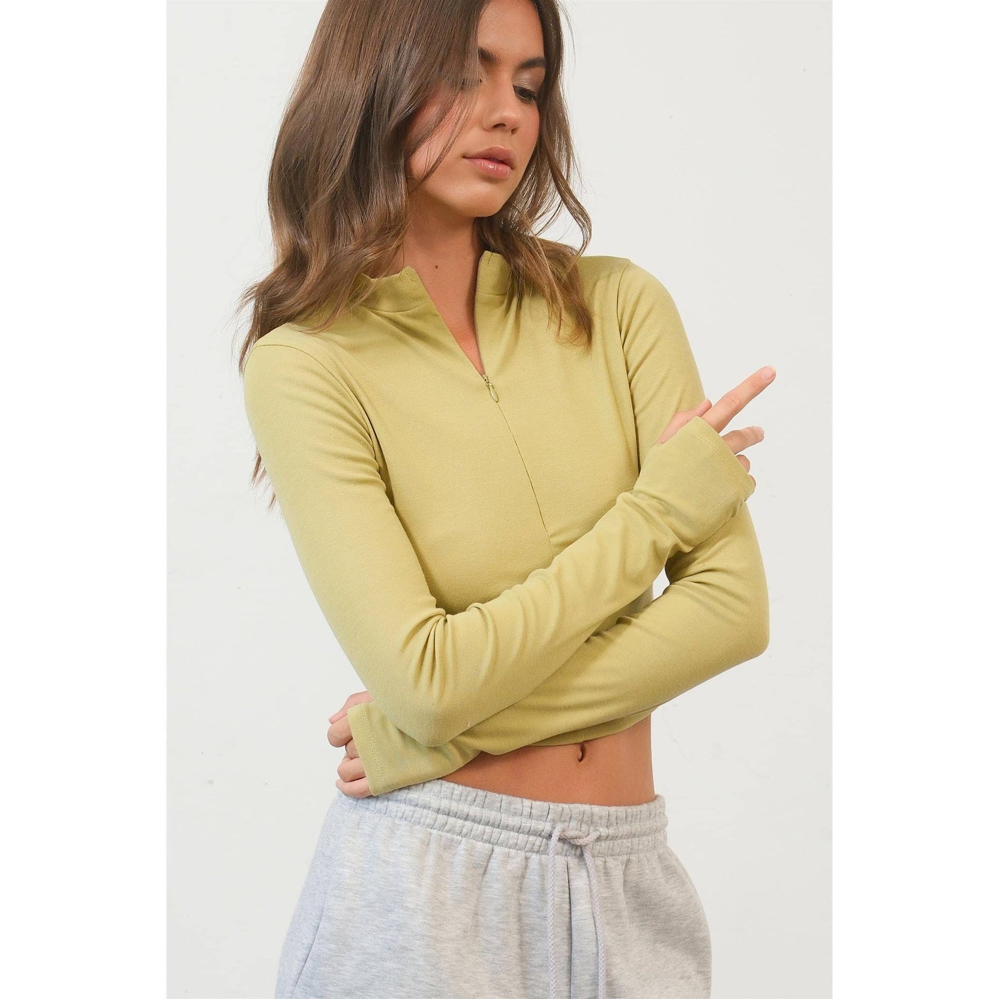 STAY STYLISH AND COMFORTABLE WITH THIS RIBBED HALF-ZIP LONG SLEEVE TOP. FEATURING A SUBTLE RIBBED TEXTURE AND A CONVENIENT HALF-ZIP CLOSURE, THIS TOP IS PERFECT FOR LAYERING OR WEARING ON ITS OWN. IDEAL FOR CASUAL WEAR OR LIGHT EXERCISE, PAIR IT WITH YOUR FAVORITE BOTTOMS FOR A VERSATILE LOOK. IMPORTED. DESIGNED IN THE USA