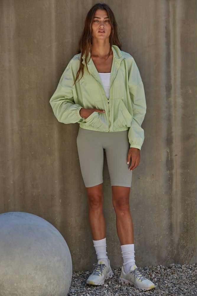 Cropped Nylon Zip Up Jacket- Lime Cream