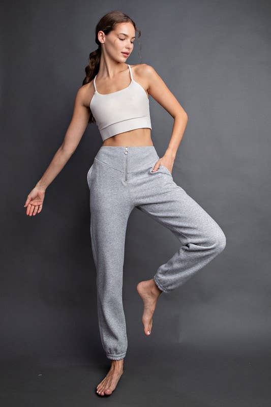 Ribbed Zip Up French Terry Sweatpant