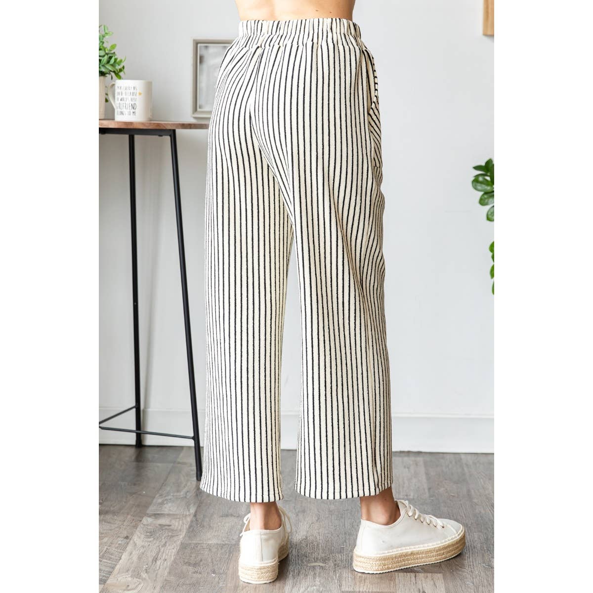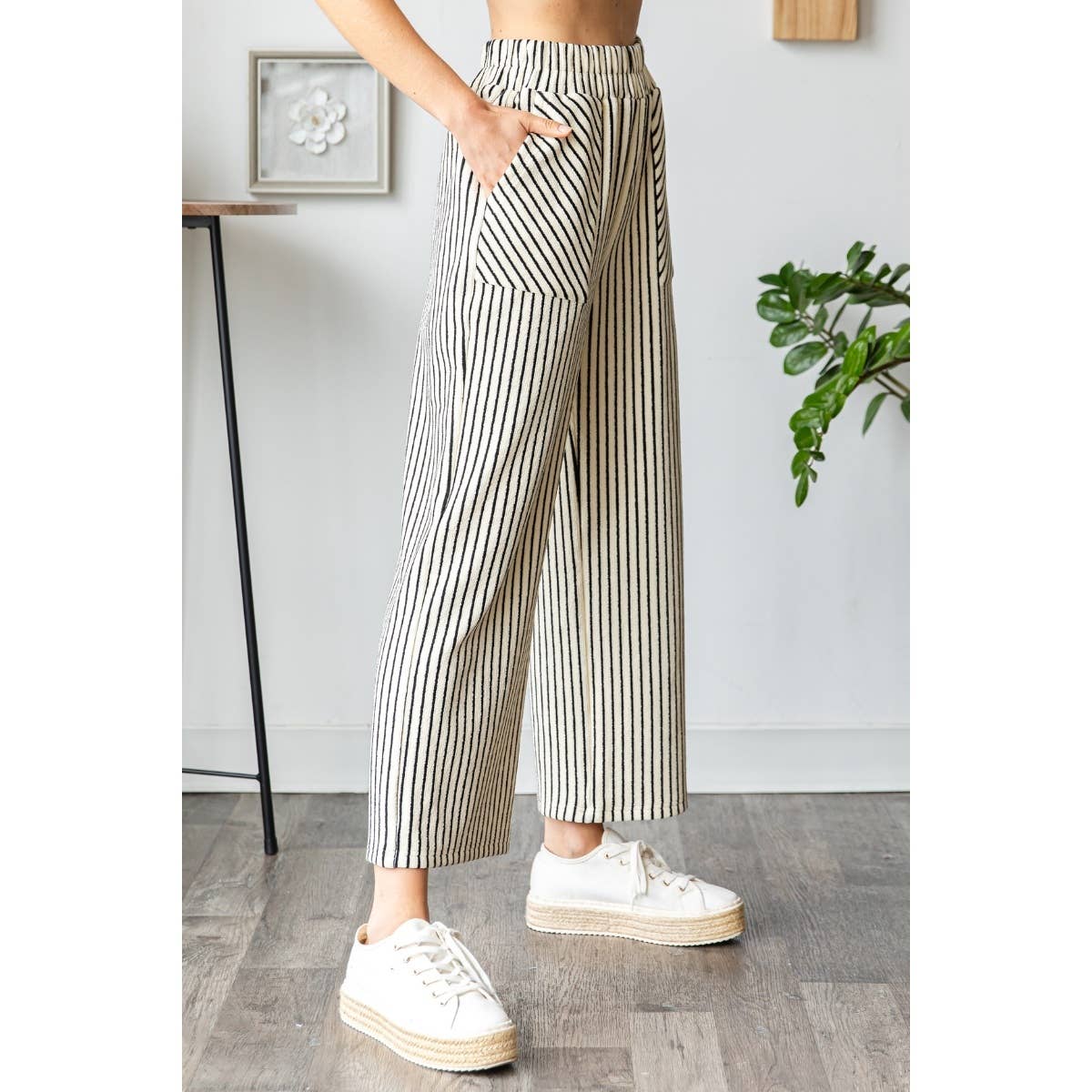 Stripe Texture Knit Front Pocket Long Pants- Ivory
